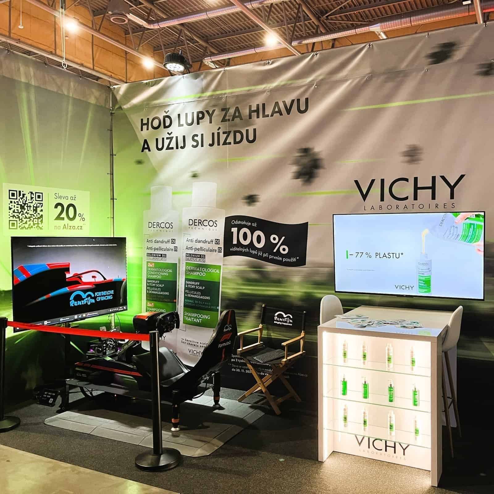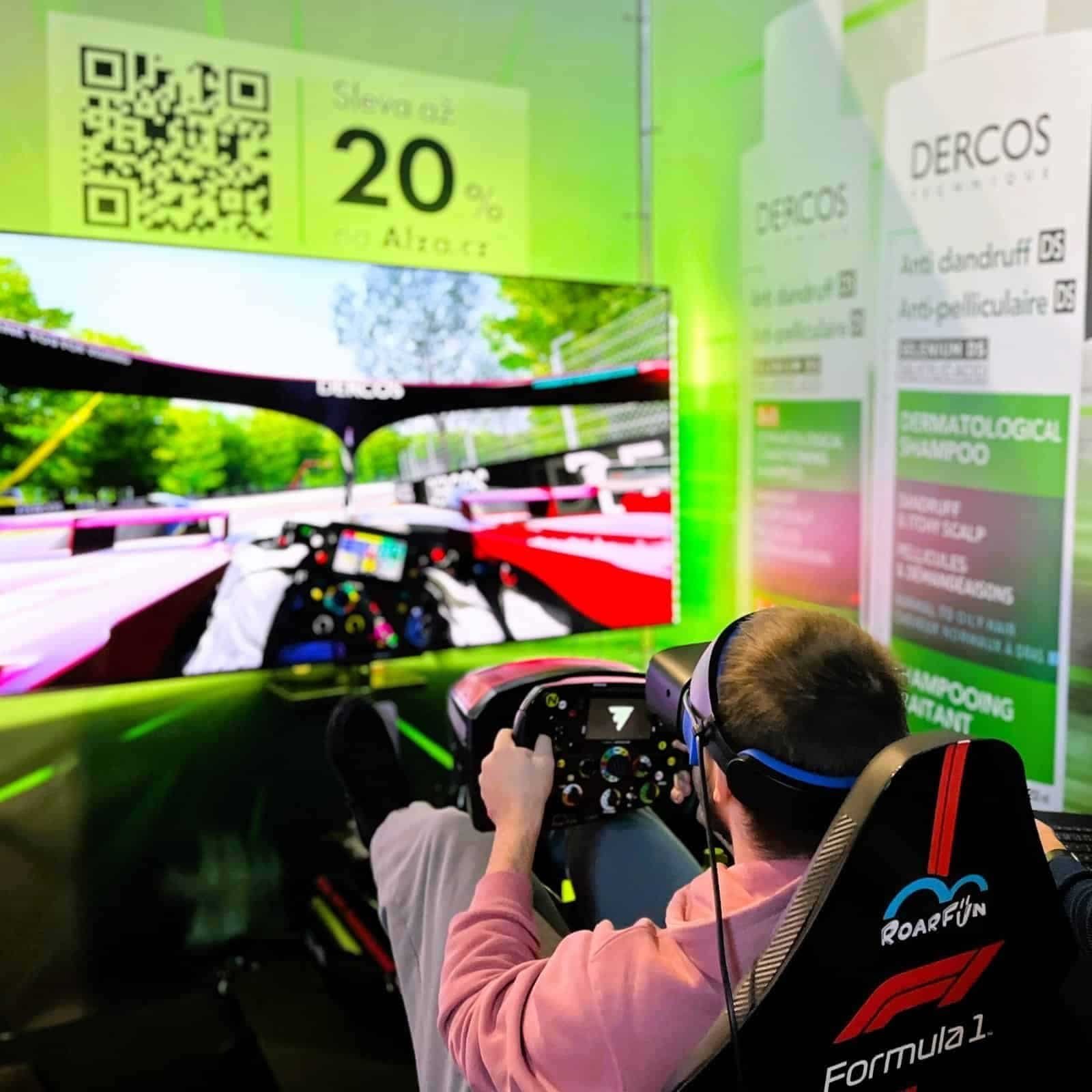 For the cosmetics brand DERCOS by Vichy, we delivered a full-motion Formula simulator equipped with an official racing seat and an F1-licensed Ferrari steering wheel — creating the perfect attraction to support their entry into the local market.